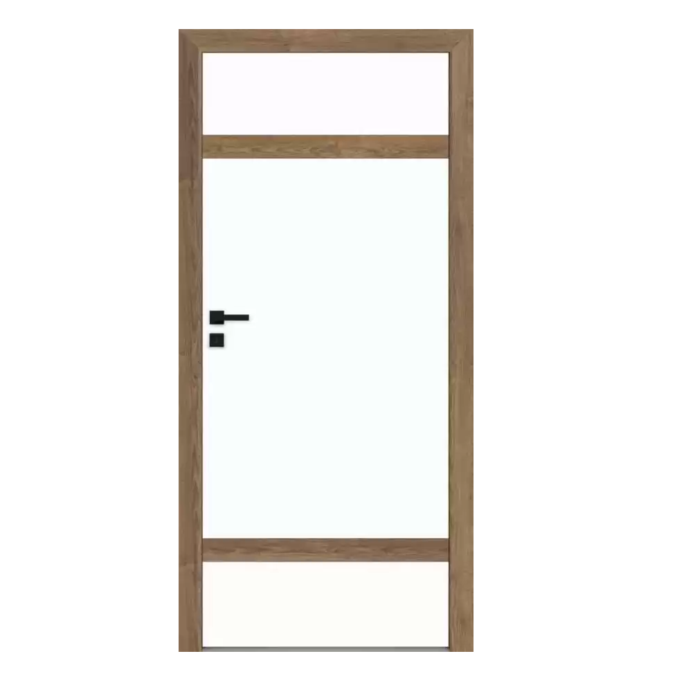 UWAGA: Skrzydło wykonane w dekorze biała mat lub czarny ST z możliwością wyboru dekoru pasa środkowego. Krawędź skrzydła w kolorze pasa środkowego. RIVIA 40 – BULAJ oklejony folią PVC w kolorze białym lub czarnym, RIVIA 50 – BULAJ oklejony folią srebrną. Konfigurator domyślnie wybiera dekor ościeżnicy w kolorze pasa środkowego skrzydła.