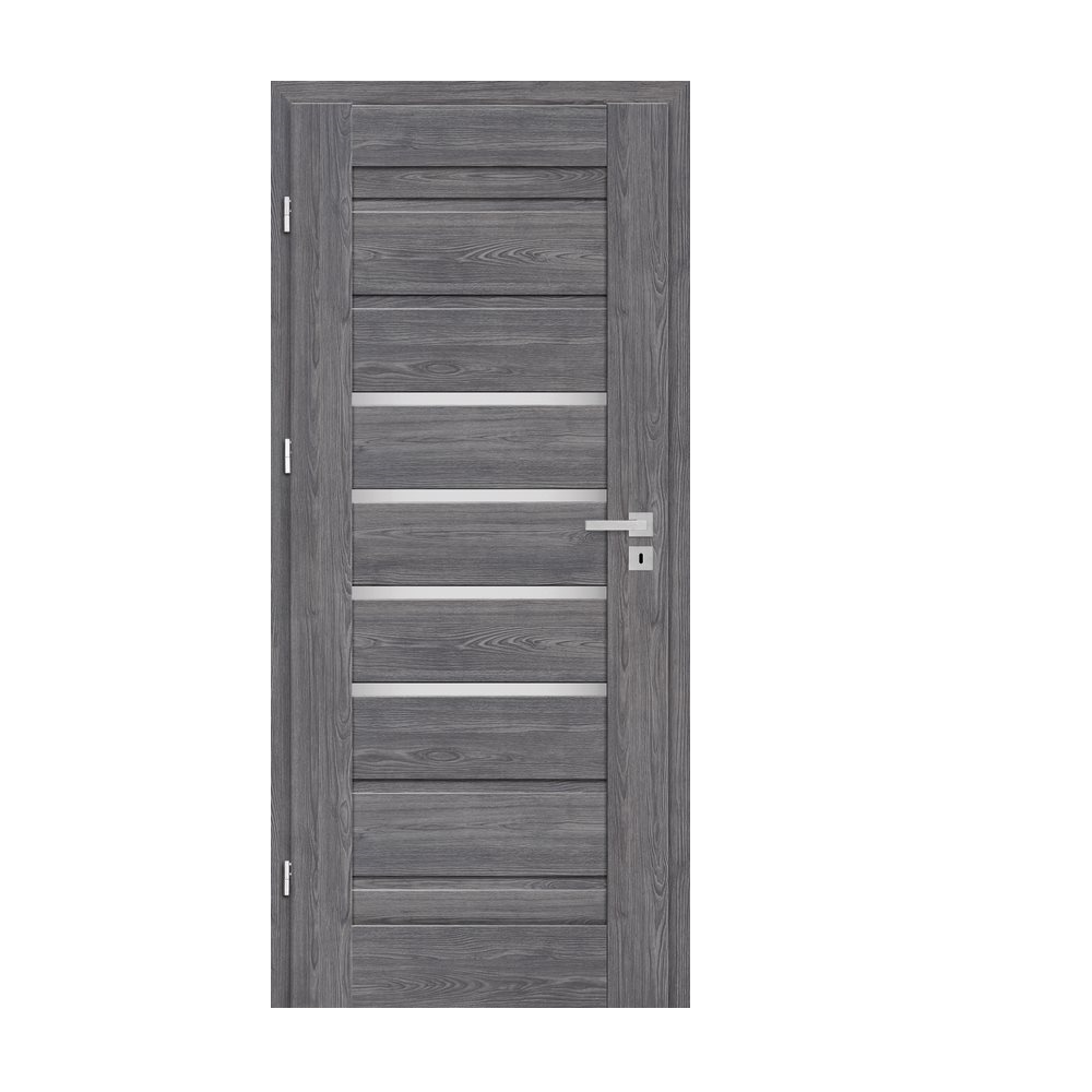 - trzy ukryte zawiasy w skrzydle bezprzylgowym w kolorze srebrnym (opcjonalnie za dopłatą w kolorze czarnym), zawiasy dostarczane i wyceniane są z ościeżnicą