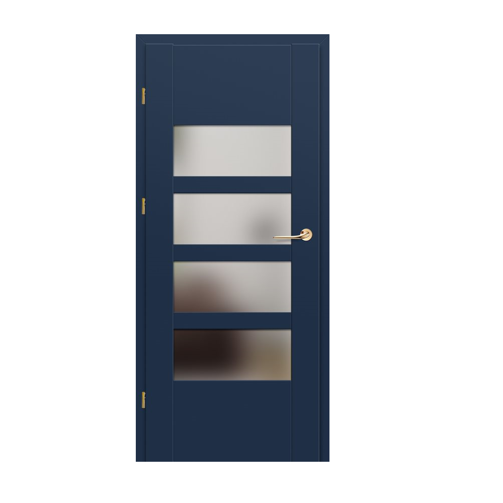 - trzy ukryte zawiasy w skrzydle bezprzylgowym w kolorze srebrnym (opcjonalnie za dopłatą w kolorze czarnym); zawiasy dostarczane i wyceniane są z ościeżnicą