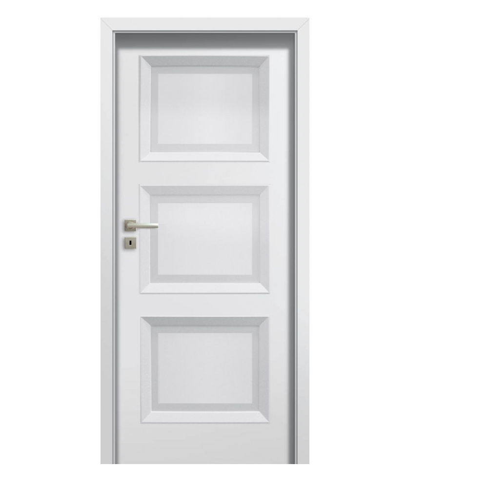 Drzwi zbudowane są z ramiaka drewnianego, obłożonego dwiema gładkimi płytami HDF, pokrytymi powierzchnią malowaną ekologicznymi farbami akrylowymi z palet RAL i NCS.