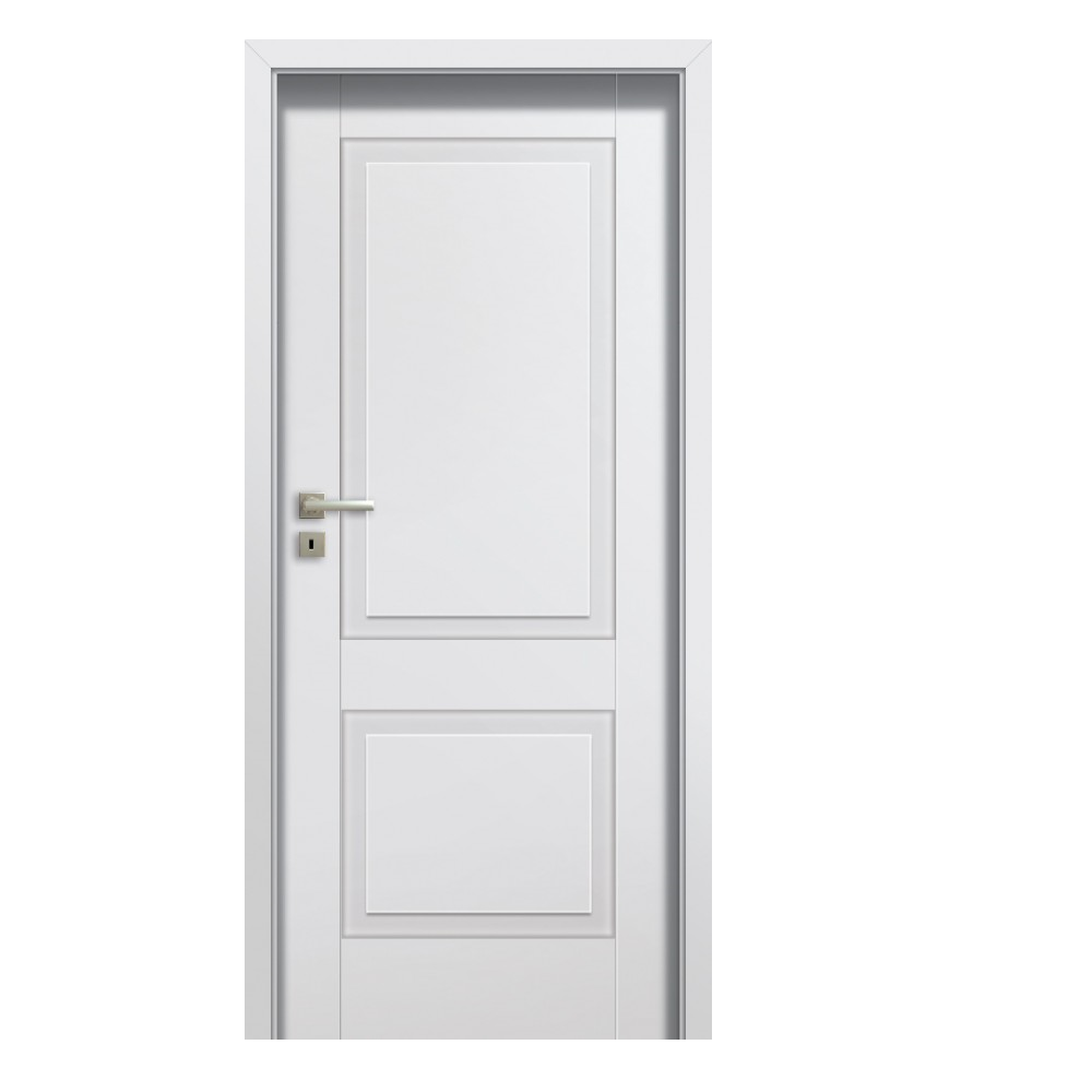 Drzwi zbudowane są z ramiaka drewnianego, obłożonego dwiema płytami HDF, pokrytymi powierzchnią malowaną ekologicznymi farbami akrylowymi z palet RAL i NCS.