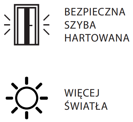 • Szyba matowa jest po jednej stronie od strony zawiasów (tzn. drzwi otwierane do siebie).